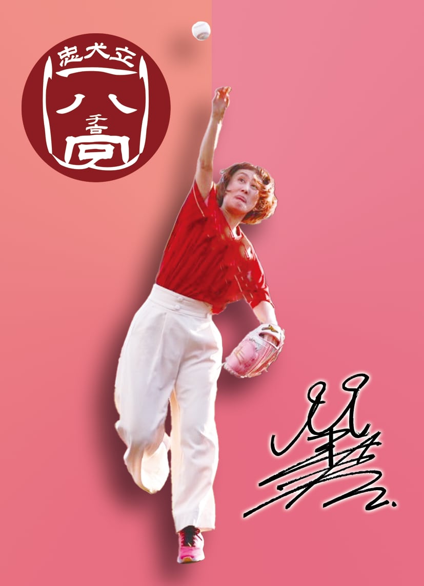 2025/5/20楽天イーグルスセレモニアルピッチでの投球写真、校章、王坂のサインが印刷されており、ステッカーを傾けると絵柄が変化する仕様になっています。